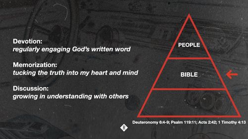 The second way to stay connected and filled is through the Bible. We do this by practicing devotion, memorization and discussion.